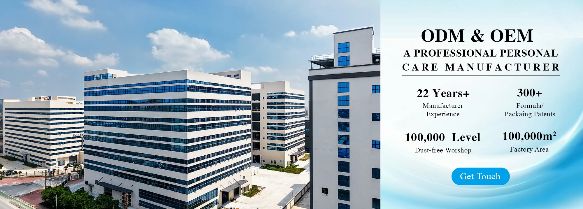20 international standard production lines, a 30-ton-per-hour intelligent emulsification platform, a fully automatic filling system, and a 100,000-level GMPC dust-free workshop.